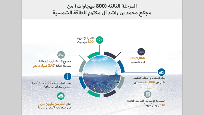 - 3.47 مليارات درهم استثمارات المرحلة الثالثة من مجمع محمد بن راشد آل مكتوم للطاقة الشمسية.