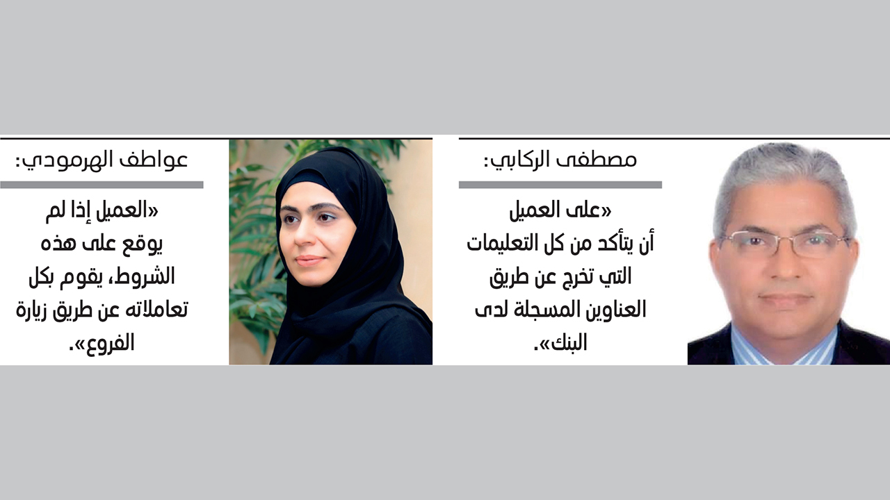 في المقابل، أفاد مصرفيان بأن هذه الشروط تضعها البنوك وتطبقها على حالات عدة، منها المعاملات التي يجري إرسالها عن طريق الفاكس من قبل العميل، كونها أصبحت قديمة وذات خطورة عالية على البنك، مؤكدين أن البنوك تحمي نفسها من التصرفات الخارجة عن نطاق اختصاصها، التي من شأنها أن تسبب خسائر أو أضراراً مالية.