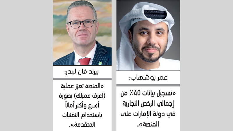 وأوضح أن المنصة تتيح للمستثمرين والشركات حاملي رخص دائرة التنمية الاقتصادية، فتح حساب مصرفي رقمي على الفور، كما تتيح للبنوك الحصول على تحديثات بيانات مباشرة لعملائها من الشركات الصغيرة والمتوسطة، مشيراً إلى أنه تم تسجيل بيانات 40% من إجمالي الرخص التجارية في دولة الإمارات على المنصة.