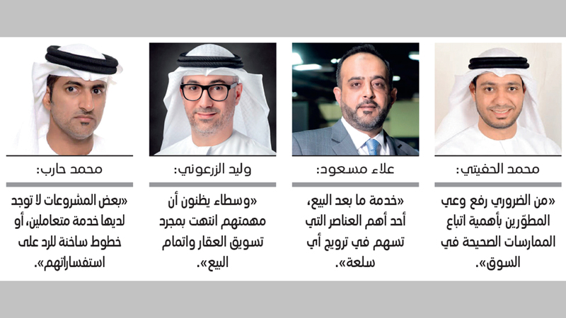 بدوره، قال المستشار العقاري، محمد الحفيتي: «خدمة المتعاملين بشكل أفضل بعد إتمام عملية البيع مهمة جداً لبناء ولاء المتعاملين، ولا يجب تجاهل العميل بمجرد انتهاء عملية البيع والتخلي عنه لفرق عمل أخرى، بل يجب استمرار التواصل معه، للحفاظ على جسر الثقة بين العميل والشركة».
