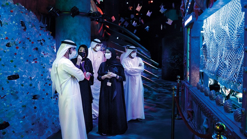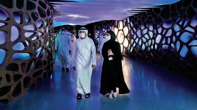 وفي «تيرّا»، استمع سموه من الرئيس التنفيذي لتجربة الزائر في «إكسبو 2020 دبي»، مرجان فريدوني، إلى تفاصيل التجربة في جناح «الاستدامة»، حيث قام سموه بجولة في الجناح شملت منطقة أعماق المحيط.