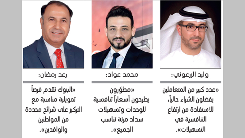 وأضاف رمضان أن «البنوك تقدم فرصاً تمويلية مناسبة مع التركيز على شرائح محددة، لاسيما من المواطنين والمقيمين، أصحاب الوظائف والأعمال المستقرة والراغبين في اقتناص الفرص العقارية في الوقت الراهن، في ظل مؤشرات كبيرة إلى زيادة الطلب في السوق».