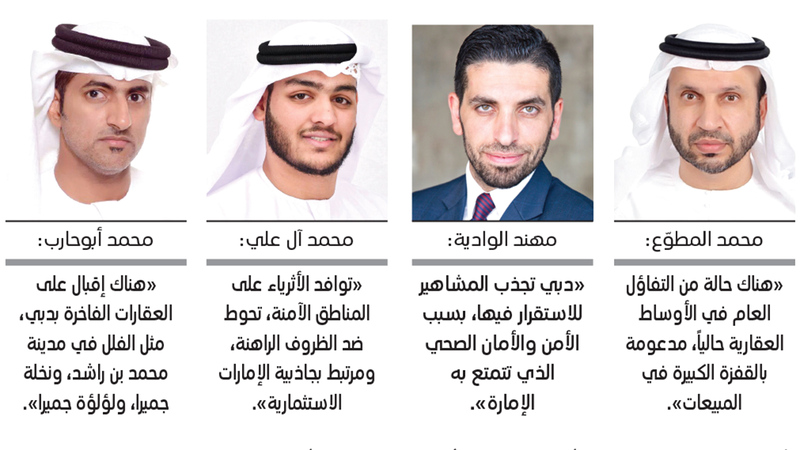 بدوره، قال رئيس مجلس إدارة شركة «الوليد الاستثمارية»، محمد المطوّع، إن «هناك حالة من التفاؤل العام في الأوساط العقارية حالياً، مدعومة بالقفزة الكبيرة في المبيعات خلال الفترة الأخيرة، وهناك أكثر من شاهد على ذلك، من خلال المستويات القياسية خلال الأشهر القليلة الماضية لمبيعات المنازل الفاخرة، التي أثبتت أن دبي باتت الملاذ الآمن لكثير من رجال الأعمال الكبار وأصحاب الثروات من مختلف دول العالم».