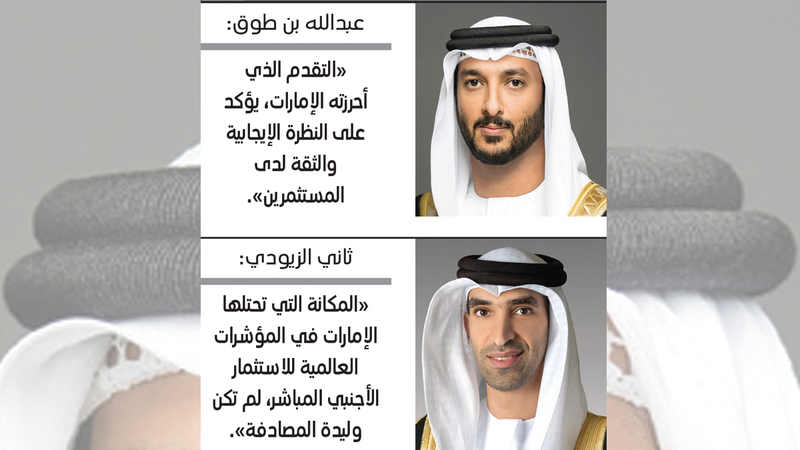 قال وزير الاقتصاد، عبدالله بن طوق المري، إن «المشهد الاستثماري والاقتصادي في دولة الإمارات نجح في تحقيق مرتبة متقدمة عالمياً، فضلاً عن صدارته إقليمياً، وذلك بفضل توجيهات القيادة الرشيدة، حيث واصلت الدولة التقدم في المؤشرات العالمية الخاصة بتدفق الاستثمارات الأجنبية وسهولة ممارسة الأعمال، ومرة أخرى تؤكد أرقام تدفقات الاستثمار الأجنبي المباشر الواردة إلى الدولة، خلال العام الماضي، صحة النهج الحكومي والسياسات والخطوات الجاري اتخاذها لتعزيز مرونة وجاذبية بيئة الأعمال، عبر منظومة متكاملة من السياسات والإجراءات، التي ترتكز على التحديث المستمر للأطر التشريعية والتنظيمية، ومواصلة إطلاق مبادرات الدعم الحكومي الرامية إلى تحسين أداء مختلف القطاعات، وتحفيز الاقتصاد الوطني وتسريع وتيرة انتعاشه وتعافيه، وسنواصل المضي قدماً في تطوير مبادرات من شأنها رفع كفاءة بيئة الاستثمار وزيادة الفرص، خصوصاً في القطاعات ذات الأولوية، لترسيخ مكانة وتنافسية الدولة إقليمياً وعالمياً». وأوضح بن طوق أن «التقدم الذي أحرزته دولة الإمارات في مؤشر جذب الاستثمارات الأجنبية، يؤكد النظرة الإيجابية والثقة لدى المستثمرين، المستندة إلى الالتزام الحكومي القوي بالتنوع الاقتصادي والابتكار والبنية التحتية وسهولة ممارسة الأعمال، وهو دليل جديد على مدى قوة اقتصاد الدولة ومتانته وقدرته على تخطي التحديات التي تتخلل المشهد الاقتصادي العالمي اليوم».