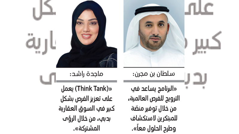 من جهتها، قالت المديرة التنفيذية لقطاع تشجيع وإدارة الاستثمار العقاري في «أراضي دبي»، ماجدة علي راشد، إن «إمارة دبي تواصل ريادتها في تعزيز البيئة الابتكارية، التي من شأنها أن تسهم في جعل الاستثمار العقاري في الإمارة فريداً من نوعه، عبر طرح امتيازات وتسهيلات عديدة هي الأولى من نوعها». وأضافت أن «برنامج (Think Tank) سيعمل على تعزيز الفرص بشكل كبير في السوق العقارية بدبي، من خلال الرؤى التي ستشاركها مختلف القطاعات المشاركة في الحدث، كما أنه بلا شك سيحدث ثورة في مستقبل دبي، ويوفر إمكانات جديدة للإمارة مركزاً استثمارياً عالمياً».
