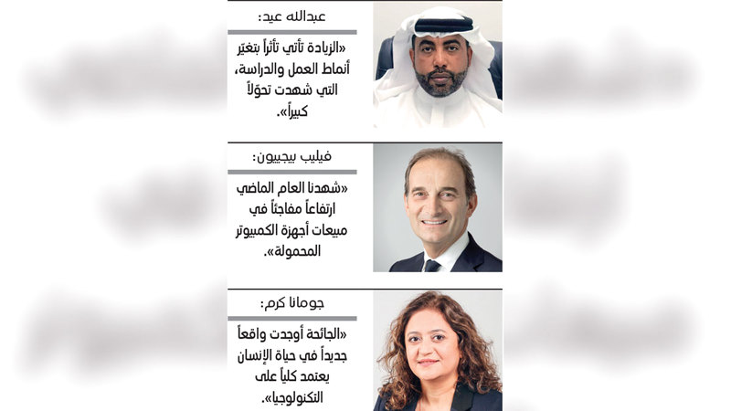وفي السياق ذاته، قال مدير «كارفور الإمارات» لدى «ماجد الفطيم للتجزئة»، فيليب بيجييون: «شهدنا العام الماضي ارتفاعاً مفاجئاً في مبيعات أجهزة الكمبيوتر المحمولة والأجهزة الإلكترونية وإكسسواراتها بشكل عام، الأمر الذي نرجعه إلى الاعتماد الكبير على التقنية خلال فترة انتشار فيروس (كورونا)، سواء من خلال التعليم عن بُعد أو العمل عن بُعد».