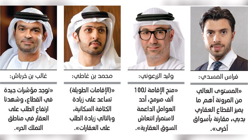 بدوره، قال المدير العام لمجموعة الحبتور، غالب بن خرباش «توجد مؤشرات جيدة في القطاع العقاري بدعم من منح الإقامة الذهبية لعدد كبير من أصحاب المهارات المتخصصة، حيث شهدنا ارتفاع وتيرة الطلب علي العقار في مختلف مناطق التملك الحر».