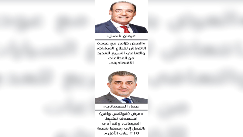 إلى ذلك، قال المدير العام لـ«فولكس واغن علي وأولاده»، عمار الجهماني، إن الشركة طرحت عرضاً خلال يوليو الماضي على السيارات المستعملة من طرازي: «تيرامونت» العائلية و«تيجوان».