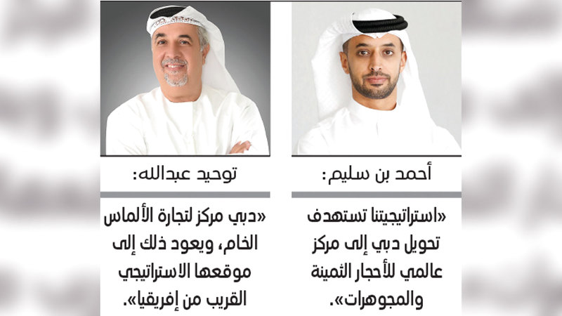 في السياق نفسه، قال رئيس مجلس إدارة مجموعة دبي للذهب والمجوهرات، توحيد عبدالله، إن دبي تعد مركزاً لتجارة الألماس الخام، ويعود ذلك إلى موقعها الاستراتيجي القريب من إفريقيا، إذ يتم استخراج الألماس، ومن الهند، حيث يتم صقل 90% من الألماس في العالم».