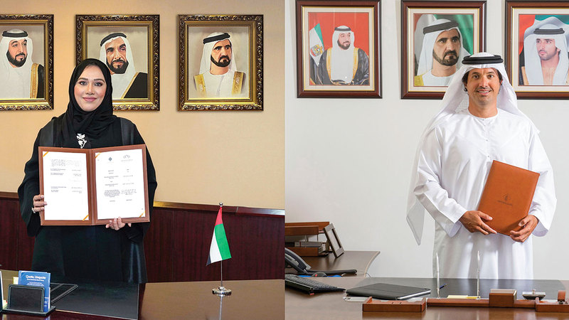 مريم السويدي وهلال المري وقعا الاتفاقية. من المصدر