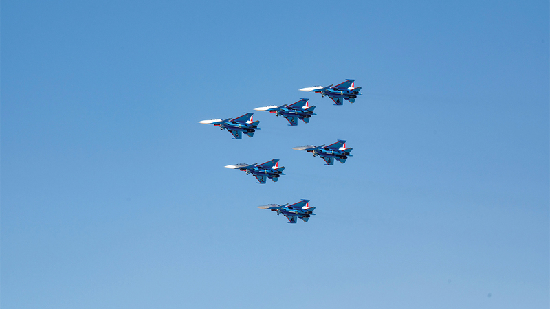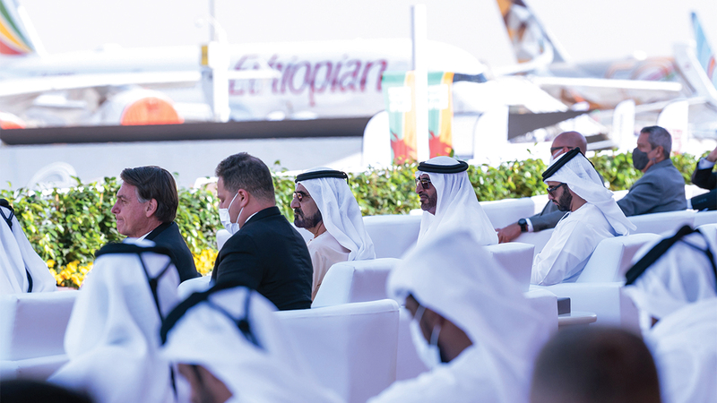 إلى ذلك، شاهد صاحب السمو الشيخ محمد بن راشد آل مكتوم، وإلى جواره رئيس جمهورية البرازيل، جايير بولسونارو، والوزير الأول ووزير المالية الجزائري، أيمن عبدالرحمن، جانباً من العرض الجوي الذي يشارك فيه عدد من أهم الطائرات المعروضة، ويصل عددها إلى 175 طائرة من أحدث الطائرات وأكثرها تطوراً في العالم، فيما يشكل العرض أحد أهم مكونات «معرض دبي للطيران»، بما يتيحه من فرصة للتعرف إلى قدرات الطائرات، وإظهار كفاءة الطيارين في التحكم والمناورة ضمن حركات متفاوتة في درجات صعوبتها.