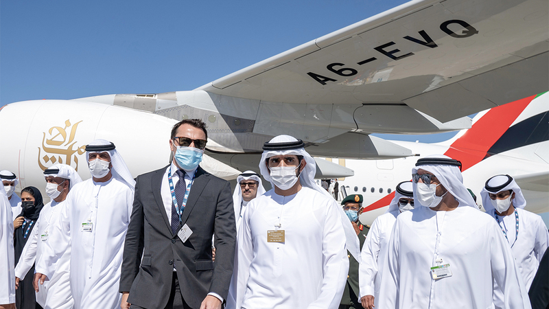 من جهته، أكد سمو الشيخ حمدان بن محمد بن راشد آل مكتوم، ولي عهد دبي، أن «معرض دبي للطيران» مثّل على مر تاريخه الطويل، ومع كل انعقاد لدوراته المتعاقبة، شريكاً رئيساً في تنمية صناعة الطيران العالمية، بشقيها المدني والدفاعي، فيما تأخذ هذه الدورة بعداً استثنائياً من الأهمية، نظراً لما يعقده عليها العالم من آمال لتخطي المرحلة الاستثنائية التي مر بها قطاع الطيران على مدار نحو عامين، جراء تفشي جائحة «كوفيد-19».