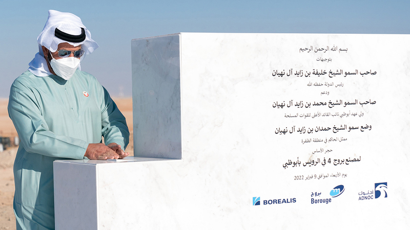 جاء ذلك، خلال قيام سموه بوضع حجر الأساس لمنشأة «بروج» التوسعية الرابعة «بروج 4» في مجمع الشركة لإنتاج البولي أوليفينات في الرويس بأبوظبي، الذي تبلغ كلفته 22 مليار درهم (6.2 مليارات دولار أميركي).