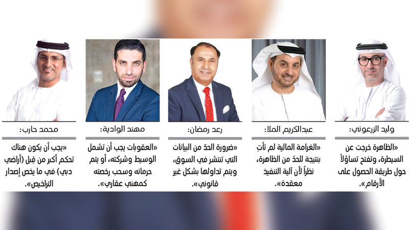 وقال الوادية إن «العقوبات يجب أن تشمل الوسيط العقاري وشركته، أو يتم حرمان الوسيط وسحب رخصته كمهني عقاري، ذلك أن من يقوم بهذه الظاهرة يعدّ غير مهني، ويسيء إلى شركته ولسوق دبي عموماً».