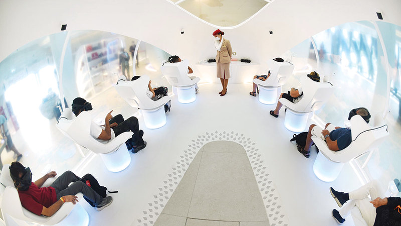 وبحسب «طيران الإمارات»، فإن رحلة الواقع الافتراضي التي تعرض التصميمات الداخلية لـ«كابينة» طائرات المستقبل، شكّلت أكثر عوامل الجذب شعبيةً بين التجارب التي حملت عنوان «مستقبل الطيران التجاري» في جناح الناقلة خلال معرض «إكسبو 2020 دبي».