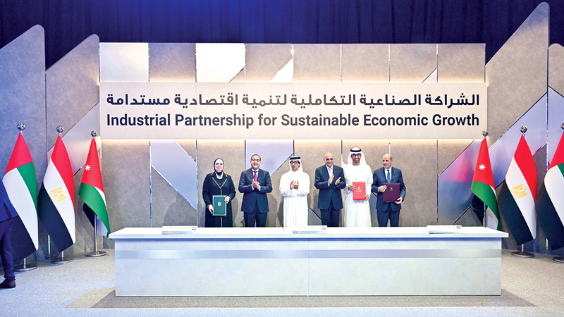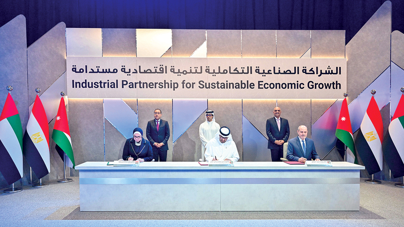 وتم توقيع الشراكة بحضور سمو الشيخ منصور بن زايد آل نهيان، ورئيس الوزراء الأردني الدكتور بشر الخصاونة، ورئيس مجلس الوزراء المصري، الدكتور مصطفى مدبولي، فيما وقع عليها كل من وزير الصناعة والتجارة الأردني، يوسف الشمالي، ووزير الصناعة والتكنولوجيا المتقدمة، الدكتور سلطان بن أحمد الجابر، ووزيرة التجارة والصناعة المصرية، الدكتورة نيفين جامع.