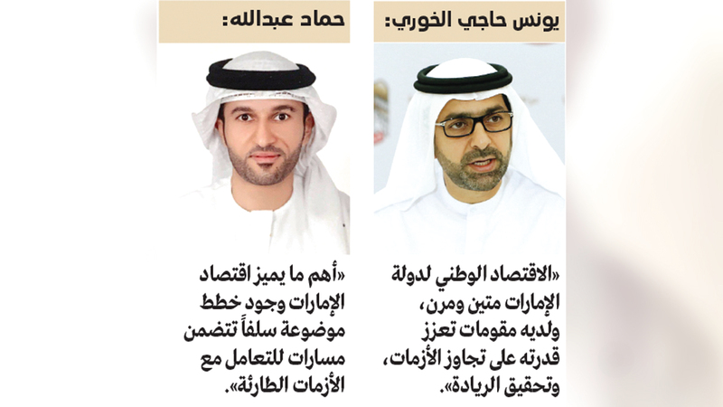 وبحسب الخبير الاقتصادي، الدكتور حماد عبدالله بن حمّاد، فإن أهم ما يميز اقتصاد الإمارات وجود خطط واستراتيجيات موضوعة سلفاً تتضمن مسارات للتعامل مع الأزمات والأحداث الطارئة، محلياً أو عالمياً. وقال: «لذلك، لم يشعر المواطنون وأصحاب أعمال بأن هناك تأثيرات كبيرة لما تشهده الساحة الاقتصادية العالمية من تقلبات».