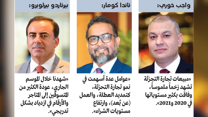 وقال المسؤول في منفذ بيع كبير في أبوظبي، راجيف تمارا، إن «الإقبال عاد تقريباً الى مستويات ما قبل الجائحة، في الوقت الذي تشهد فيه المبيعات نمواً بنسب تصل إلى 30% خلال العام الجاري، في بعض القطاعات مقارنة بعامي 2020 و2021، بشكل يعود بها سريعاً الى المستويات السائدة قبل جائحة كورونا».