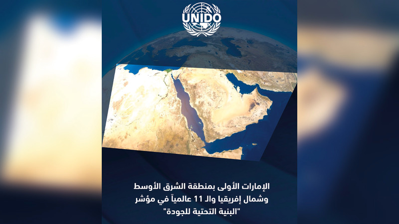 حققت دولة الإمارات العربية المتحدة، المركز الأول على مستوى منطقة الشرق الأوسط وشمال إفريقيا، والـ11 عالمياً في مؤشر البنية التحتية للجودة للتطور المستدام، الصادر عن منظمة الأمم المتحدة للتنمية الصناعية «UNIDO»، والشبكة الدولية للبنية التحتية للجودة (INet QI) لعام 2022 لفئة الدول ذات الناتج المحلي الاجمالي بين 100 مليار دولار، وتريليون دولار، متقدمة على دول مثل، البرتغال، سنغافورة، فنلندا، الدنمارك، وبلجيكا.