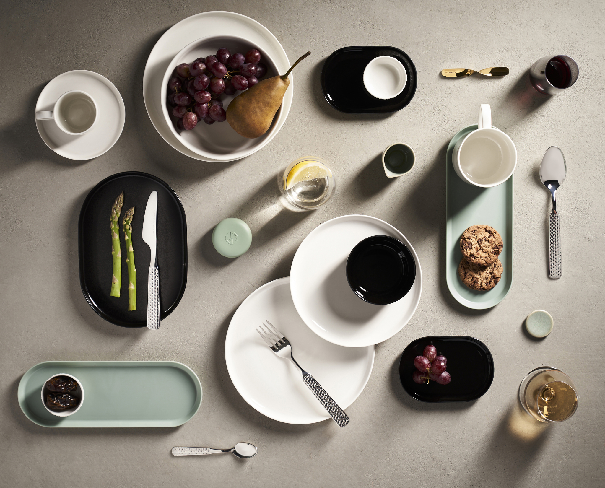 وتضم المجموعة أواني مائدة جديدة من السيراميك والزجاج وأدوات طعام وتقديم للطعام، بالإضافة إلى أفضل أنواع الأقمشة والمنسوجات لتجربة رفاهية متكاملة على متن الطائرة.