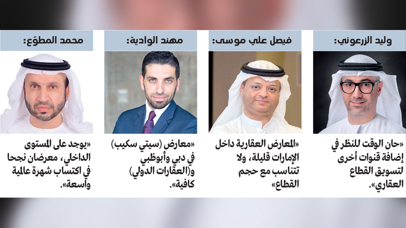 وفي وقت قال فيه عقاريان لـ«الإمارات اليوم» إن المعارض العقارية داخل دولة الإمارات قليلة، ولا تتناسب مع حجم الزخم الكبير في القطاع، لافتين إلى أن إقامة معارض عقارية أخرى غير «سيتي سكيب» ستكون في مصلحة السوق العقارية، رأى آخران أن معارض مثل «سيتي سكيب دبي» و«سيتي سكيب أبوظبي»، فضلاً عن «معرض العقارات الدولي»، كافية، واكتسبت شهرة عالمية واسعة، مؤكدين أهمية تنظيم معارض خارجية للترويج العقاري أكثر من نظيرتها داخل الدولة.