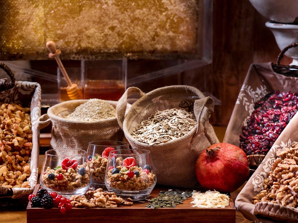 ويقدم الفندق عالما من النكهات والقوائم التي تحتفل بمفاهيم الحيوية، والمنتجات الطازجة الموسمية، وتجارب تناول الطعام العائلية، من خلال مطعم Liwan لتناول بوفيه عالمي أو خيارات حسب الطلب خلال الإفطار والغداء والعشاء وعشاء المأكولات البحرية يوم السبت، وكذا حفلات البرنش يوم الأحد من كل أسبوع.