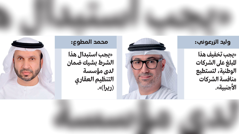 من جهته، قال رئيس شركة «دبليو كابيتال» للوساطة العقارية، وليد الزرعوني، إن «اشتراط إيداع ضمان بنكي لدخول القطاع العقاري أمر مقبول في حال الشركات الأجنبية، إلا أن المطلوب تخفيف قيمة مبلغ الضمان من خمسة ملايين درهم إلى مليون درهم فقط».