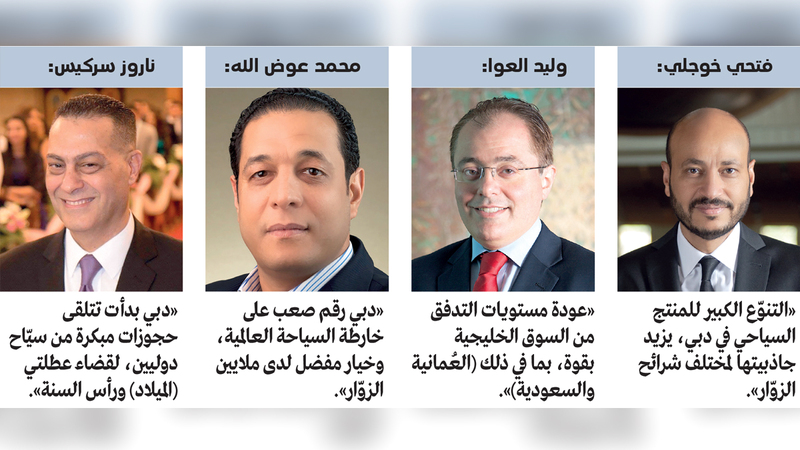 وكشف عوض الله أن «معظم الفنادق ستحقق مستويات إشغال تراوح بين 95 و100%، بالتزامن مع عطلة الميلاد ومناسبة رأس السنة»، مشيراً إلى أن «جاذبية دبي تتعزّز أيضاً في ظل تنوّع منتجها السياحي».