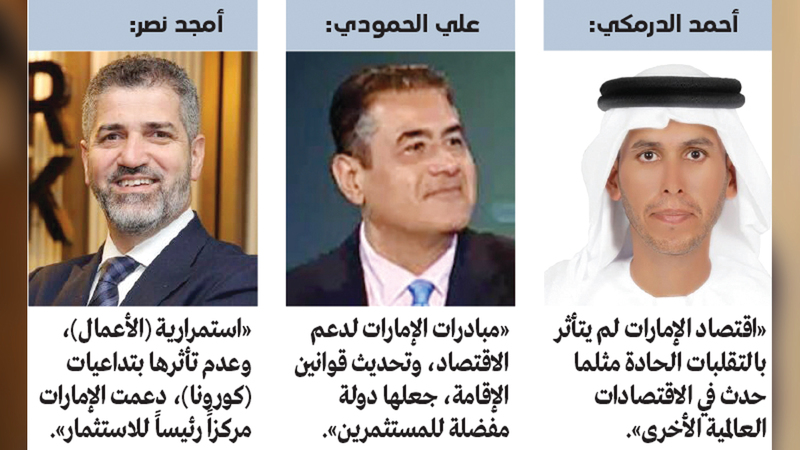 وأكدوا أن المبادرات التي اتخذتها الدولة لدعم الاقتصاد، وتحديث المنظومة التشريعية، وقوانين الإقامة، فضلاً عن الأمن والاستقرار، والتحول الرقمي الكبير، جعلها المفضلة للعديد من المستثمرين الأجانب والعائلات، في ظل الظروف المضطربة التي مر بها الاقتصاد العالمي خلال عام 2022، مشيرين إلى أن دولة الإمارات كانت أسرع الدول تعافياً من جائحة «كوفيد-19»، وعودة القطاعات الاقتصادية إلى العمل بشكل كامل في وقت سريع، ما يعد اختباراً لقدرة الدولة على التعامل مع الأزمات الطارئة عموماً.