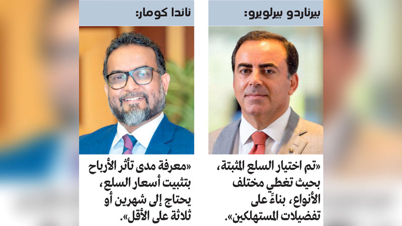 من جانبه، قال مدير الاتصال المؤسسي في «مجموعة اللولو العالمية»، ناندا كومار، إن «المجموعة بدأت تثبيت أسعار 200 سلعة لمدة عام كامل، وذلك اعتباراً من يناير الجاري وحتى نهاية عام 2023، بحيث لا يتم رفع أسعارها في منافذ بيع المجموعة أبداً، حتى في حال حدوث ارتفاع في أسعارها عالمياً». وأوضح كومار أن «90% تقريباً من السلع المثبتة تعدّ سلعاً غذائية أساسية ويطلق عليها سلع البقالة، بينما نسبة الـ10% المتبقية تعدّ سلعاً استهلاكية غير غذائية تهم المستهلكين».