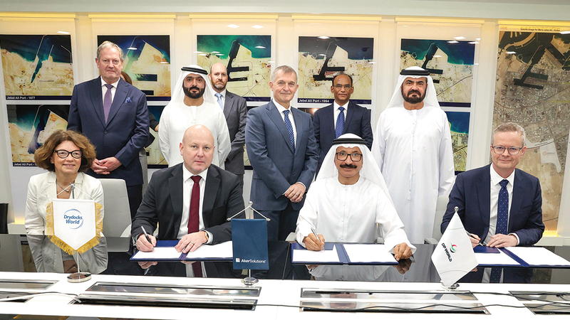 وجرى توقيع الاتفاقية في المقر الرئيس لـ«دي بي ورلد» في دبي، من قبل رئيس مجلس الإدارة والرئيس التنفيذي لمجموعة «دي بي ورلد»، سلطان أحمد بن سليّم، ونائب الرئيس التنفيذي للمنصات والمرافق في شركة «آكر سوليوشنز»، ستورلا ماغنوس، ونائب الرئيس التنفيذي في شركة «ألتيرا إنفراستركتشر»، آرني هيغن تيرنكفيست.
