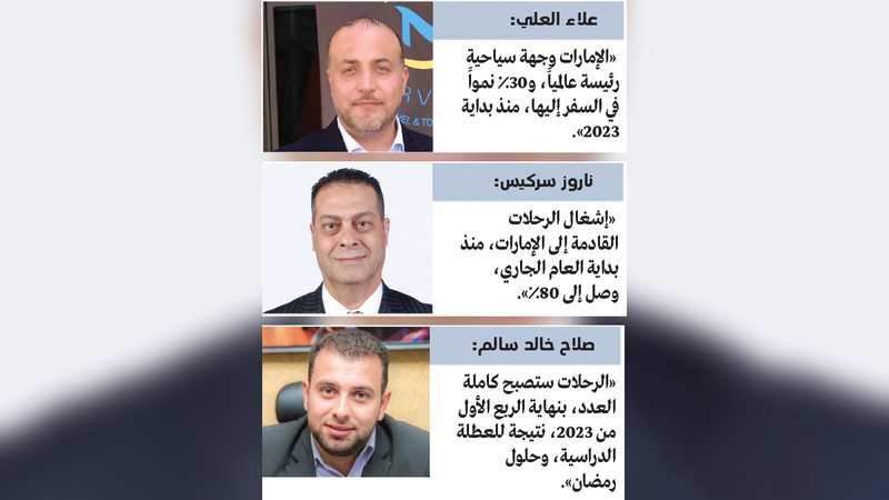وقال المدير العام لشركة «بالحصا للسياحة»، ناروز سركيس، إن «إشغال الرحلات القادمة إلى الإمارات، منذ بداية العام الجاري، وصل إلى 80%، في أعلى نسبة تصلها الرحلات في هذا التوقيت منذ أكثر من ثلاث سنوات».
