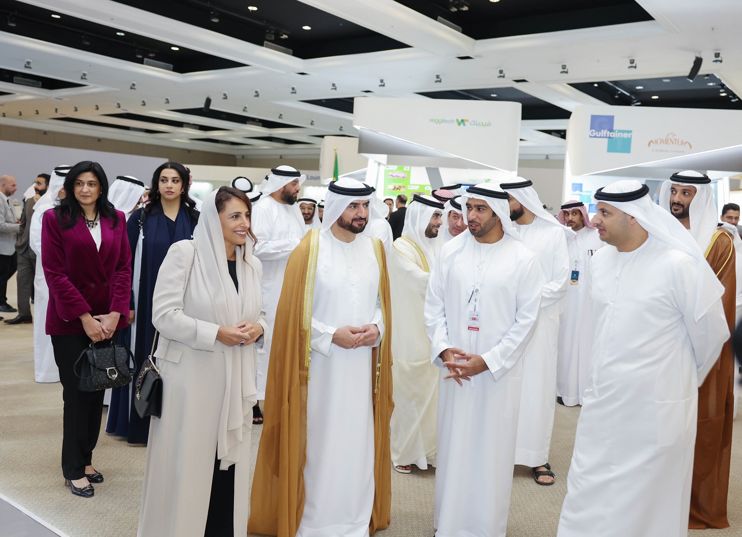 وكان في استقبال سمو نائب حاكم الشارقة لدى وصوله الشيخ خالد بن عبدالله القاسمي رئيس هيئة الشارقة للموانئ والجمارك والمناطق الحرة، والشيخة بدور بنت سلطان القاسمي رئيسة هيئة الشارقة للاستثمار والتطوير "شروق"، والشيخ سالم بن عبدالرحمن القاسمي رئيس مكتب سمو الحاكم، والشيخ سعود بن سلطان بن محمد القاسمي مدير مكتب الشارقة الرقمية، والشيخ فيصل بن سعود القاسمي مدير هيئة مطار الشارقة الدولي، والشيخ سعود بن محمد بن سعود القاسمي الرئيس التنفيذي لقطاع العقارات في الشارقة لإدارة الأصول، ومعالي عبدالله بن طوق المري وزير الاقتصاد وعدد من كبار المسؤولين رؤساء الدوائر الحكومية وممثلي المنظمات والشركات والمستثمرين.