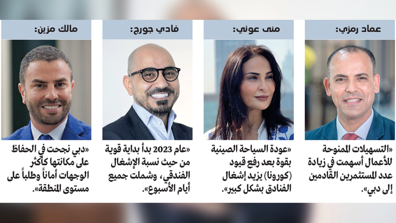 وتوقعت عوني ارتفاع الإشغال الفندقي، خلال الربع الأول من العام الجاري، بنسبة تصل إلى 15% مقارنة مع الفترة نفسها من العام الماضي، لاسيما مع استمرار استضافة العديد من المعارض والمؤتمرات والفعاليات، علاوة على عودة السياحة الصينية بقوة بعد رفع بكين قيود «كورونا» على الرحلات الدولية، ما يرفع إشغال فنادق دبي وأبوظبي بشكل كبير.