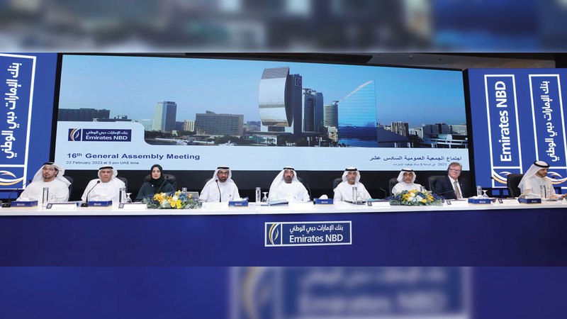 عقد بنك الإمارات دبي الوطني اجتماع جمعيته العمومية السادس عشر في 22 فبراير 2023. وتضمنت أبرز النتائج المالية للبنك ارتفاع توزيعات الأرباح المقترحة بنسبة 20% لتصل إلى 60 فلساً للسهم الواحد.