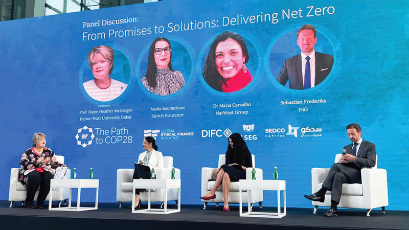 وأفاد المركز في بيان، أمس، بأنه شارك أكثر من 500 من المختصّين في القمة، التي تُعدّ الأولى ضمن سلسلة من المؤتمرات المزمع عقدها، في إطار استضافة مركز دبي المالي العالمي لبرنامج «الطريق إلى مؤتمر الأطراف كوب 28»، بالشراكة مع «مبادرة التمويل الأخلاقي العالمية»، والتي تعمل بمثابة منصّة لبذل جهود استباقية في قطاع التمويل، للوقوف على تفعيل مسرّعات للحدّ من تداعيات التغيّر المناخي، وبالتالي تسريع وتيرة التحوّل الأخضر.