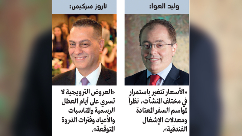 وأضاف العوا: «معظم المنشآت الفندقية تتعامل مع مواقع حجز شبكية، ما يعقد عملية إتاحة عروض مخفضة لفئات محددة من المتعاملين»، لافتاً إلى أن الأسعار تتغير باستمرار في مختلف المنشآت، نظراً لمواسم السفر المعتادة، ومعدلات الإشغال الفندقية ضمن إطار زمني محدد.