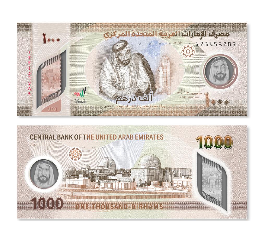 يطرح مصرف الامارات العربية المتحدة المركزي، الورقة النقدية الجديدة من فئة الـ1000 درهم، المصنعة من مادة البوليمر للتداول في الأسواق، وستكون متاحة في البنوك ومحلات الصرافة اعتباراً من يوم الإثنين 10 أبريل 2023.