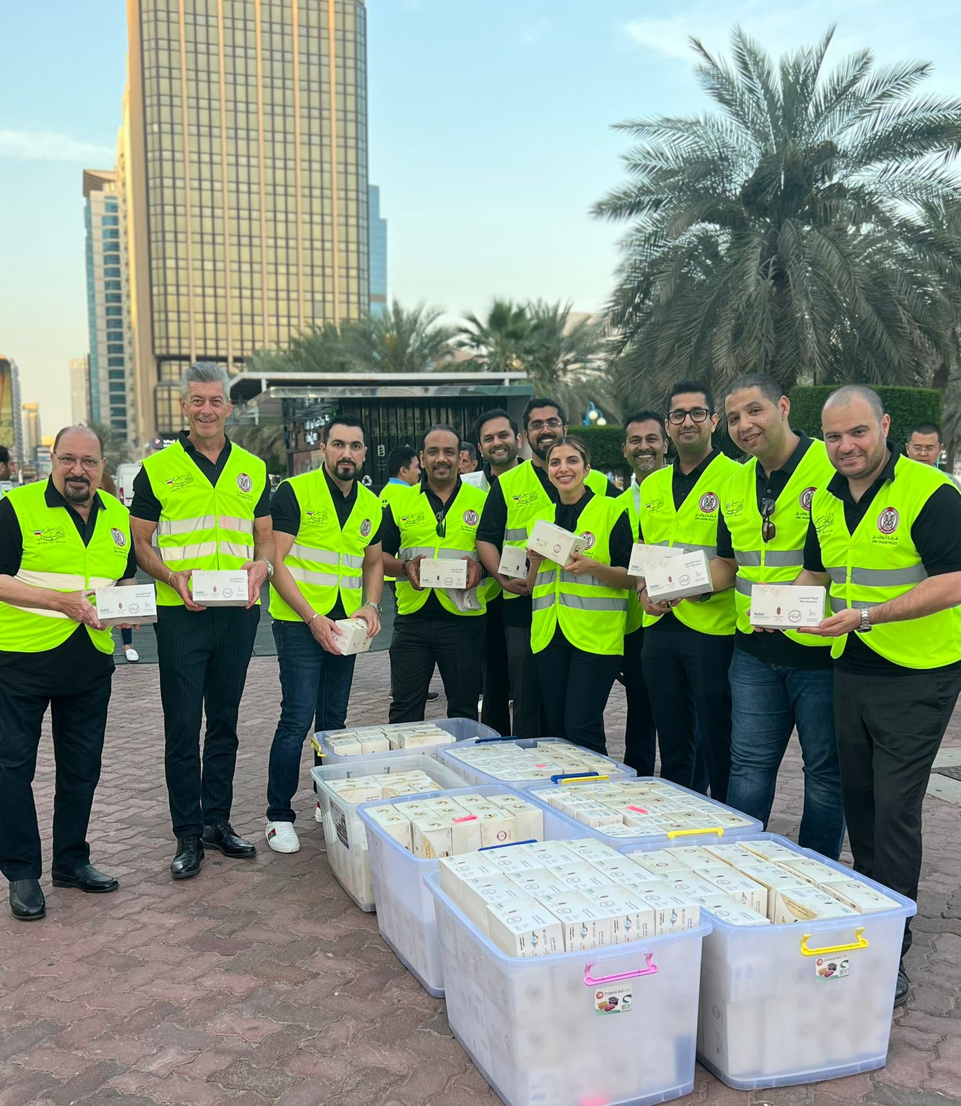 شارك فندق باب القصر مع فريق "أبشر يا وطن" التطوعي لتوزيع وجبات إفطار صائم على السائقين بالتقاطعات المرورية وسط العاصمة وذلك بالتعاون مع شرطة أبوظبي .
