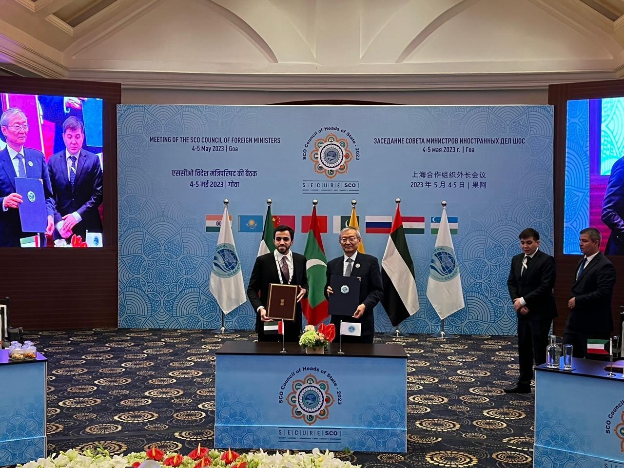 مُنحت دولة الإمارات رسمياً صفة " شريك حوار " في منظمة شنغهاي للتعاون، وذلك على هامش اجتماع مجلس وزراء خارجية المنظمة، والذي عُقد في غوا بجمهورية الهند يومي 4 و5 مايو 2023. حيث تُوّجَت مشاركة دولة الإمارات بالتوقيع على مذكرة تفاهم للانضمام إلى الرابطة كشريك حوار .