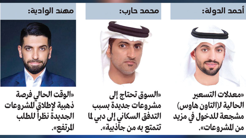 وذكروا لـ«الإمارات اليوم»، أن معدلات التسعير الحالية لـ«التاون هاوس» مشجعة للمطورين للدخول في مزيد من المشروعات، مشيرين في الوقت نفسه إلى أهمية طرح مشروعات تناسب جميع فئات المستثمرين.
