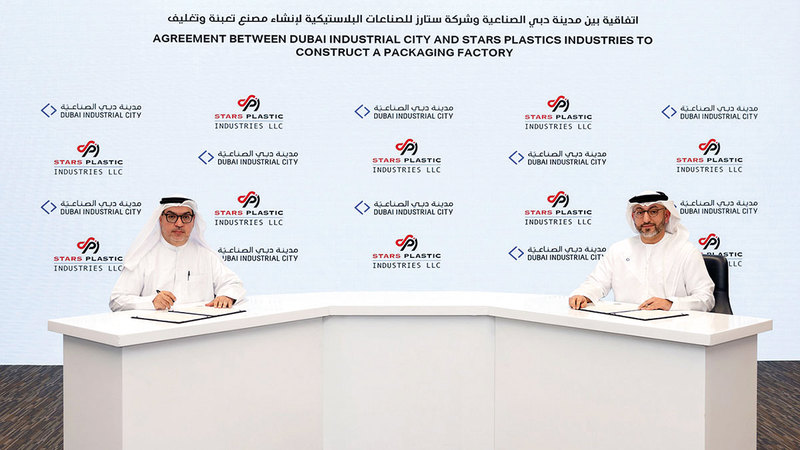 كما وقّع أبوالشوارب اتفاقية مع الرئيس التنفيذي لشركة «ستارز» للصناعات البلاستيكية، فيصل الزرعوني، لاستثمار 90 مليون درهم في بناء مصنع جديد لتعبئة المواد الغذائية في «دبي الصناعية»، علماً أن من المقرر أن تنطلق أعمال البناء هذا العام في المصنع الجديد لمنتجات تعبئة المواد الغذائية.