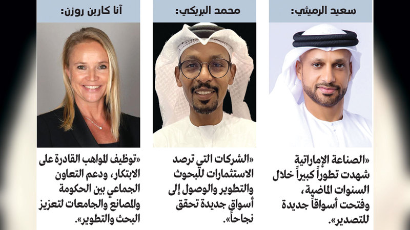 في السياق نفسه، قال المدير التنفيذي لـ«مدينة مصدر»، محمد البريكي، إن «الاستثمار في مجال البحوث والتطوير يعد سمة رئيسة للشركات الناجحة»، مبيناً أن الشركات التي ترصد الاستثمارات للبحوث والتطوير لتلبية احتياجات المستهلك، والوصول إلى أسواق جديدة ورفع جودة المنتج، هي التي تحقق نجاحاً في ظل منافسة قوية بالأسواق المحلية والعالمية.