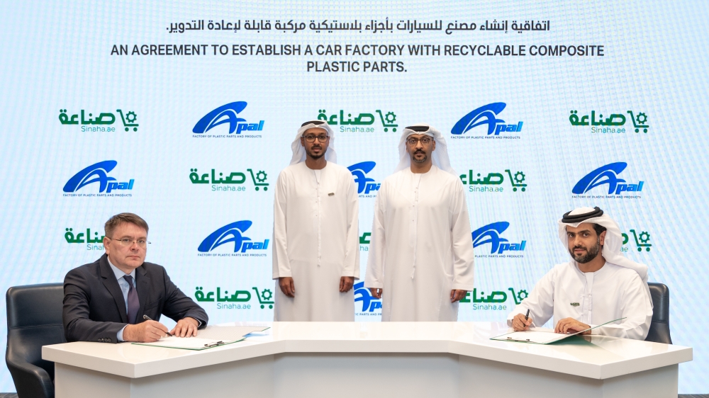 وقعت «منصة صناعة» - المنصة الموحدة في دولة الإمارات لدعم الصناعات والمنتجات الوطنية، اتفاقية لإنشاء أول مصنع من نوعه لصناعة السيارات من مواد بلاستيكية مركبة وقابلة لإعادة التدوير، وسيكون مقره في العاصمة أبوظبي، بشراكة بين «منصة صناعة» الإماراتية، وشركة APAL الدولية التي تضم تحالفاً من سبعة مصانع متخصصة في المركبات والهياكل وقطع الغيار.