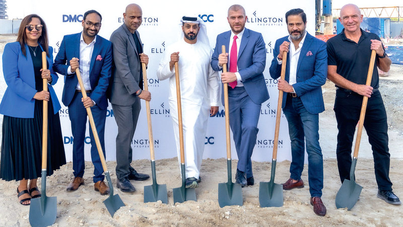 «إلينغتون العقارية» و«دبي للسلع المتعددة» وضعا حجر الأساس لـ«أبر هاوس». من المصدر