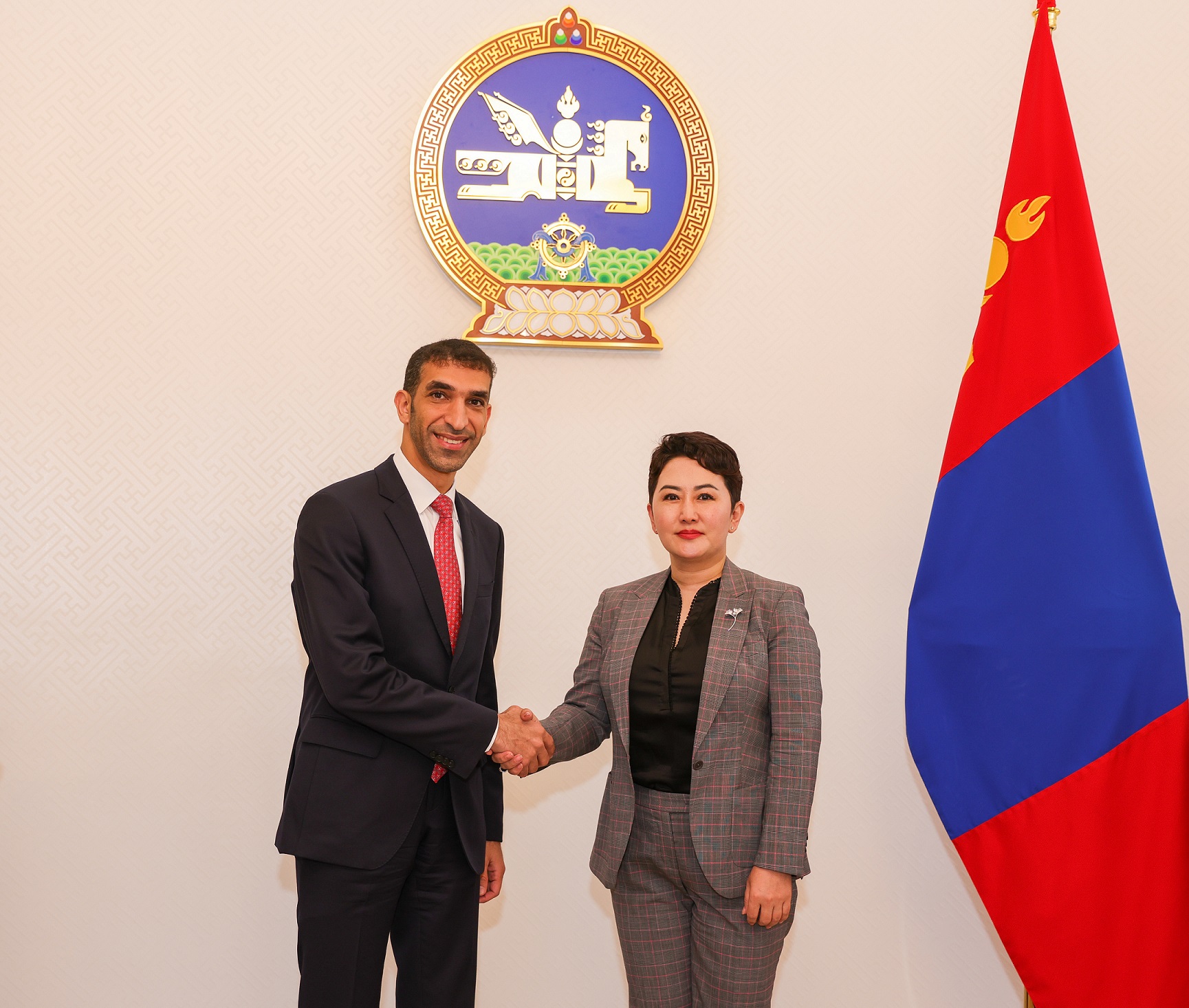 كما عقد الزيودي اجتماعاً مع بي باتسيتسيغ وزيرة خارجية منغوليا حيث جرى بحث سبل تنمية الشراكة التي تربط دولة الإمارات بمنغوليا في العديد من المجالات، والتزام الدولتين بتعزيز التعاون التجاري والاستثماري بينهما. كما التقى سانداغ بايمباتسوغت وزير النقل وتطوير الطرق، حيث استعرضا سبل الاستفادة من الموقع الاستراتيجي لمنغوليا لتحفيز نمو قطاعي الخدمات اللوجستية والطيران.