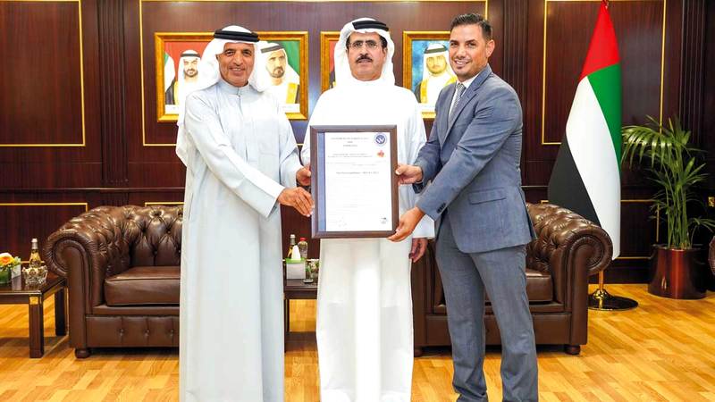 الطاير خلال تسلمه شهادة الـ«آيزو» وتقرير مطابقة «صافي الانبعاثات الصفري». من المصدر