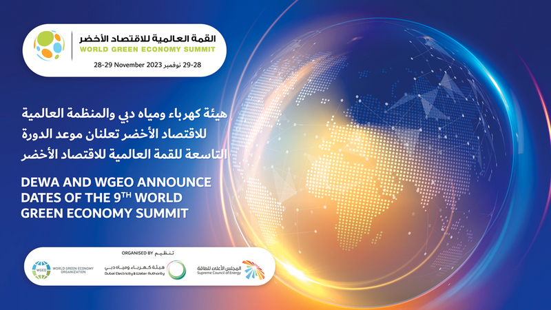 أعلنت المنظمة العالمية للاقتصاد الأخضر، وهيئة كهرباء ومياه دبي، والمجلس الأعلى للطاقة بدبي، عن تنظيم الدورة التاسعة من «القمة العالمية للاقتصاد الأخضر» يومي 28 و29 نوفمبر 2023 في مدينة جميرا بدبي، وذلك قبيل انعقاد الدورة الـ28 لمؤتمر الأطراف في اتفاقية الأمم المتحدة الإطارية، بشأن تغير المناخ (COP28)، التي تستضيفها دولة الإمارات في مدينة «إكسبو دبي» من 30 نوفمبر إلى 12 ديسمبر المقبل.