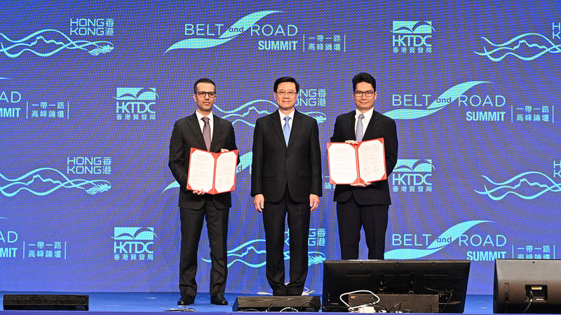 وجرى توقيع المذكرة خلال قمة «مبادرة الحزام والطريق» في هونغ كونغ من قبل المدير التنفيذي لمؤسسة دبي للتنمية الاقتصادية، هادي بدري، ووكيل وزارة الخدمات المالية والخزانة في حكومة منطقة هونغ كونغ الإدارية الخاصة، جوزيف تشان.