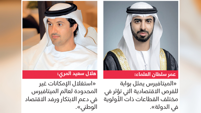 وأكد وزير دولة للذكاء الاصطناعي والاقتصاد الرقمي وتطبيقات العمل عن بعد، عمر سلطان العلماء، أن «الميتافيرس يمثل بوابة للفرص الاقتصادية التي تؤثر في مختلف القطاعات ذات الأولوية في الدولة، وتفتح المجال لتبني تقنيات الواقع المعزز والافتراضي وغيرها من الركائز التكنولوجية التي تبنتها الدولة في خططها الاستراتيجية الرئيسة، وضمن أولوياتها نحو ترسيخ ريادتها عالمياً في المجالات الرقمية».